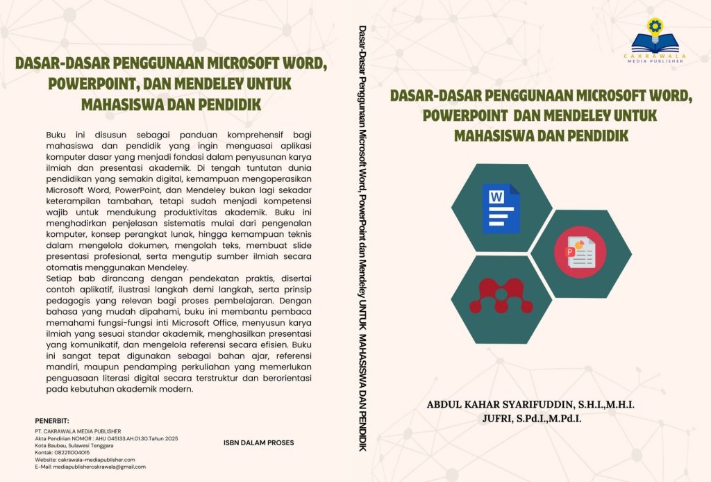 Buku ini disusun sebagai panduan komprehensif bagi mahasiswa dan pendidik yang ingin menguasai aplikasi komputer dasar yang menjadi fondasi dalam penyusunan karya ilmiah dan presentasi akademik. Di tengah tuntutan dunia pendidikan yang semakin digital, kemampuan mengoperasikan Microsoft Word, PowerPoint, dan Mendeley bukan lagi sekadar keterampilan tambahan, tetapi sudah menjadi kompetensi wajib untuk mendukung produktivitas akademik. Buku ini menghadirkan penjelasan sistematis mulai dari pengenalan komputer, konsep perangkat lunak, hingga kemampuan teknis dalam mengelola dokumen, mengolah teks, membuat slide presentasi profesional, serta mengutip sumber ilmiah secara otomatis menggunakan Mendeley. Setiap bab dirancang dengan pendekatan praktis, disertai contoh aplikatif, ilustrasi langkah demi langkah, serta prinsip pedagogis yang relevan bagi proses pembelajaran. Dengan bahasa yang mudah dipahami, buku ini membantu pembaca memahami fungsi-fungsi inti Microsoft Office, menyusun karya ilmiah yang sesuai standar akademik, menghasilkan presentasi yang komunikatif, dan mengelola referensi secara efisien. Buku ini sangat tepat digunakan sebagai bahan ajar, referensi mandiri, maupun pendamping perkuliahan yang memerlukan penguasaan literasi digital secara terstruktur dan berorientasi pada kebutuhan akademik modern.